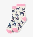 Sizes 2-4 and 4-7. 75% cotton, 23% nylon, 2% spandex. No elastic.